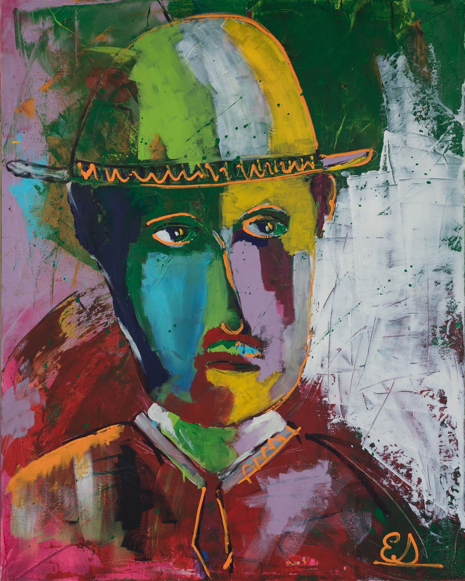 This is one of my favorite paintings and it is of Charlie Chaplin. I particularly enjoyed painting it because I felt that Chaplin was a very lively and bright person but, ironically, his movies were in black and white. I also paid special attention to Chaplin’s eyes, as they have always appeared to be very soulful.