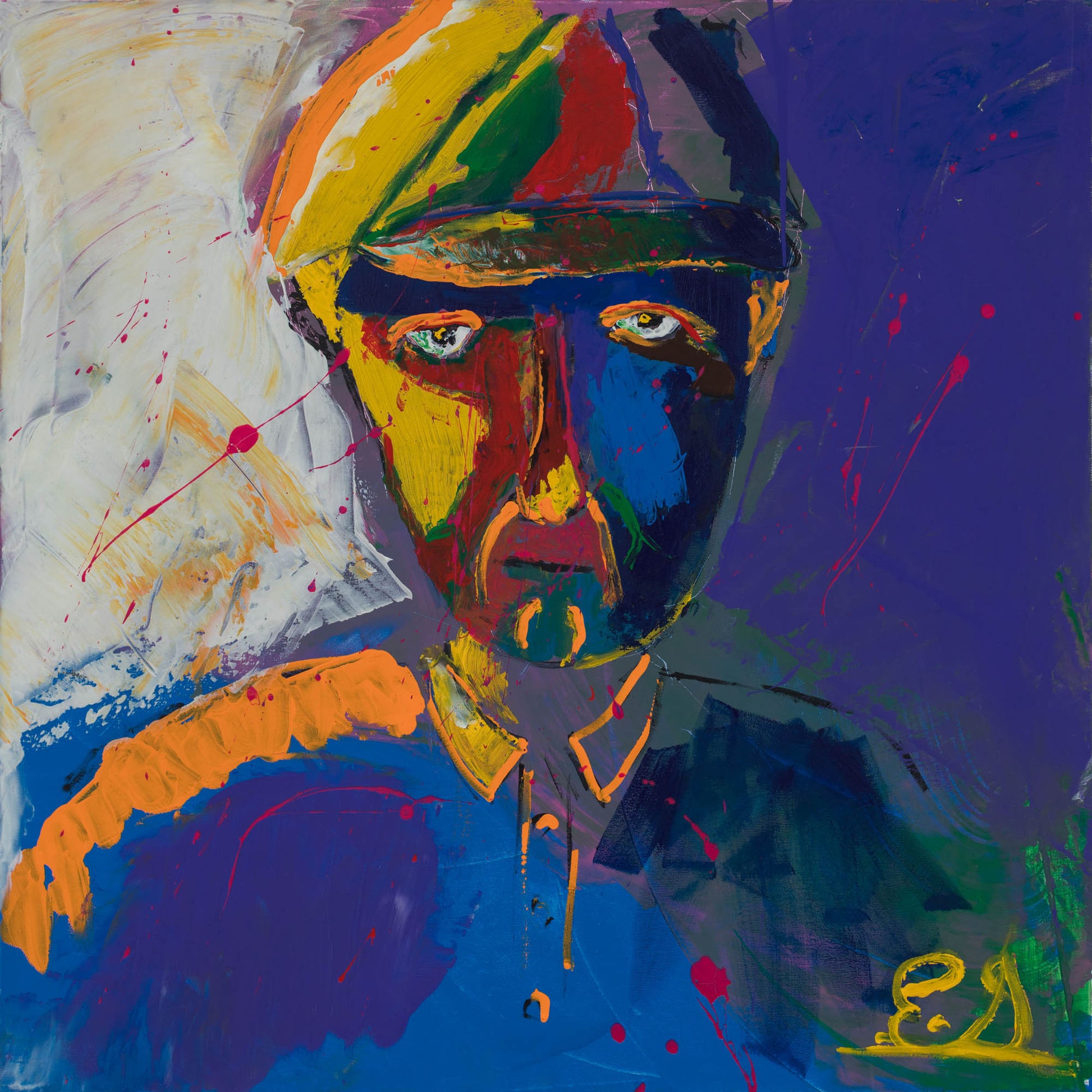 I painted Leonard Cohen, a Canadian icon, because he is one of my mother’s favorite musicians. I became exposed to Leonard Cohen, listening to him regularly on my daily drive to and from school with my mother. I also had a chance to see him perform live, and it was an amazing experience. I chose the purple to be the main colour for this painting because of the it is a mix of blue – which shows the sadness of his music and red – which highlights the boldness of his poetry. I also really enjoyed painting his eyes.