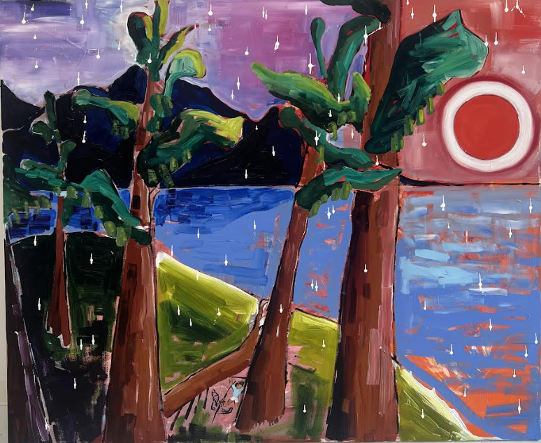 As memories start to fade and hands not as steady, the surfer, now Patient x, returns to thoughts of his childhood. When I was around Five, shows one of his fondest: just a simple day in the sun, enjoying swinging from a redwood in the forest behind his house. The painting uses thrown paint as an overlay to convey the haziness of our memories as we age and even more so when we lose our faculties. As Patient x goes through his journey of regular MRIs, biopsies, and cognitive testing, he returns to comforting scenes such as these to temporarily distract him from his ensuing mental decline. The right of the painting uses warmer tones to depict the idea of the hope to which Patient x clings as he tries to heed his doctor’s advice.